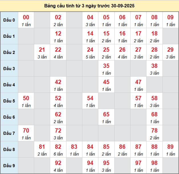 Thống kê cầu hôm nay giúp người chơi có thêm dữ liệu khi phân tích và dự đoán kỳ này được chính xác hơn. Trước khi đến với thống kê, mời các bạn theo dõi lại bảng kết quả kỳ trước để có cái nhìn bao quát hơn về vị trí các con số đã xuất hiện
