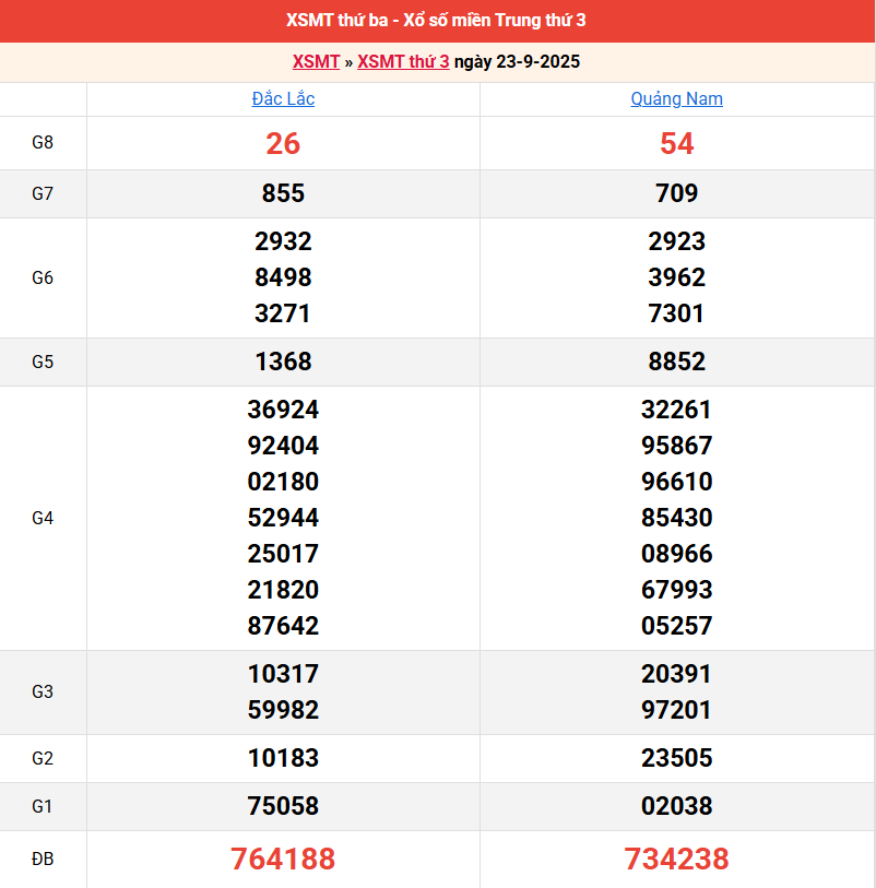 Bảng kết quả kỳ trước 23/9/2025