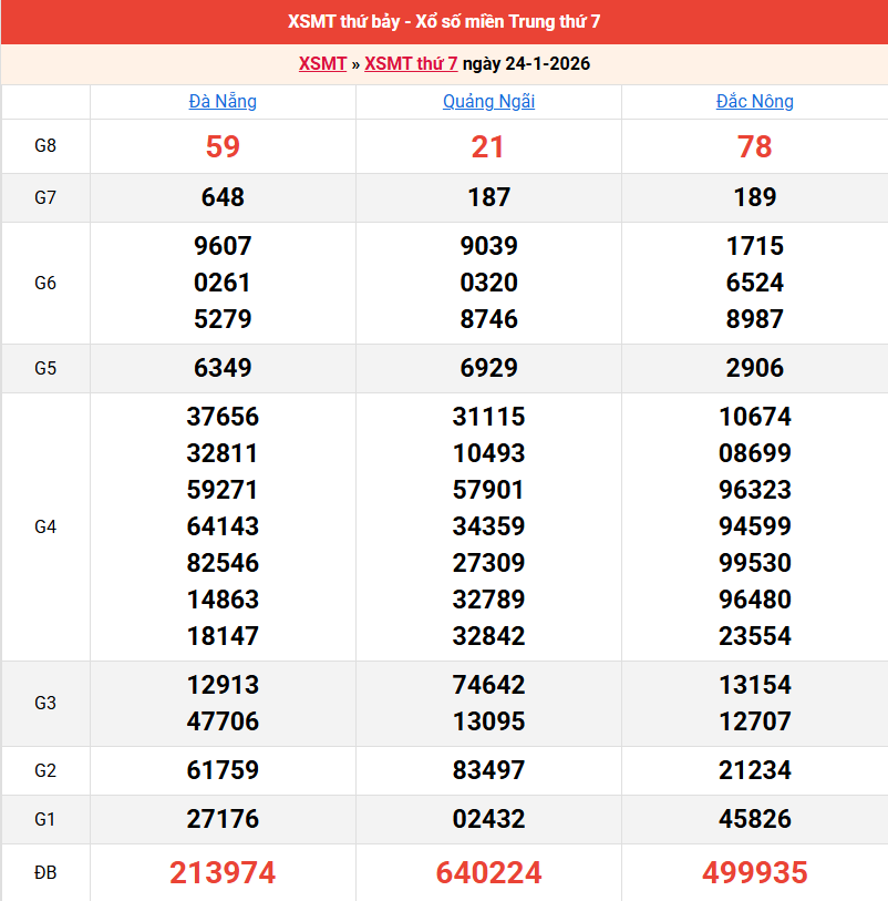 Bảng kết quả kỳ trước 24/01/2026