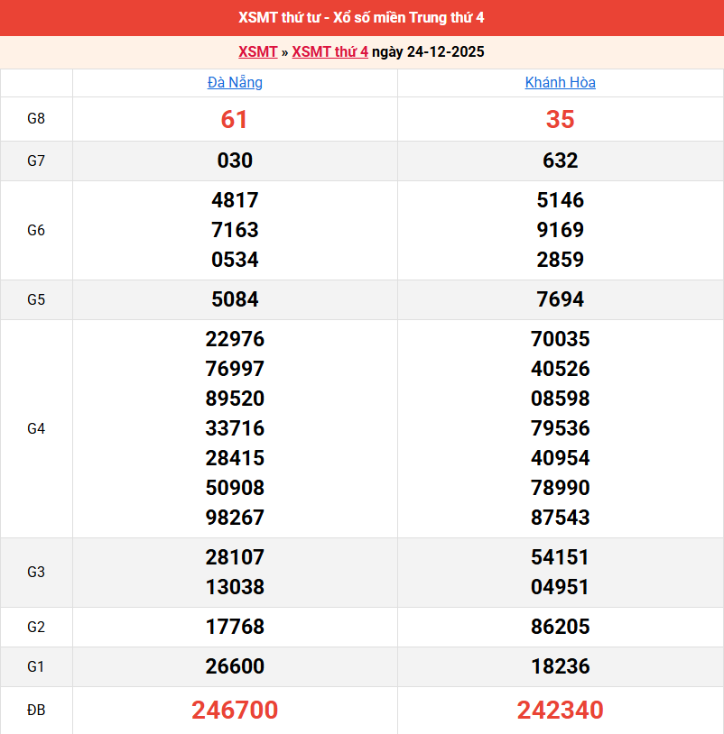 Bảng kết quả kỳ trước 24/12/2025