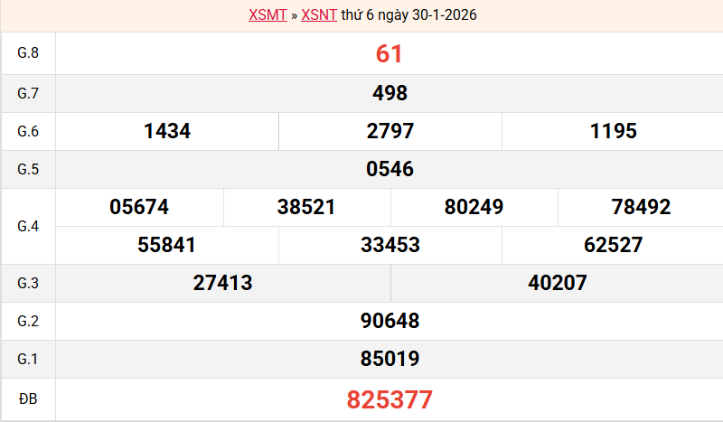 Mời các bạn xem lại bảng kết quả kỳ trước với giải đặc biệt, giải tám, lô tô 2 số để có thể đưa ra nhận định dự đoán NT ngày 06/02/2026 chuẩn xác nhất.