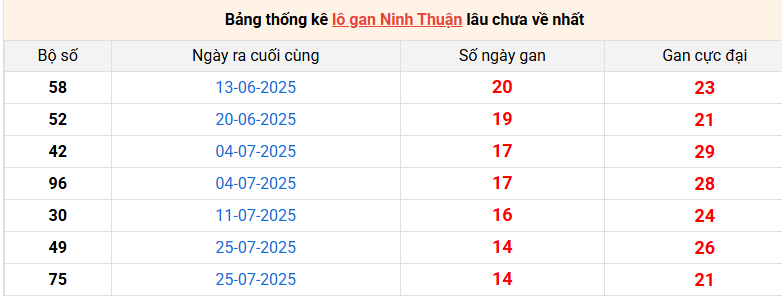 Bảng thống kê lô gan Ninh Thuận lâu về nhất 07/11/2025
