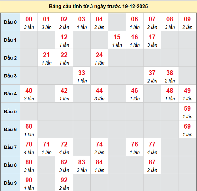 Mời các bạn xem lại bảng kết quả kỳ trước với giải đặc biệt, giải tám, lô tô 2 số để có thể đưa ra nhận định dự đoán NT ngày 19/12 năm 2025 chuẩn xác nhất.