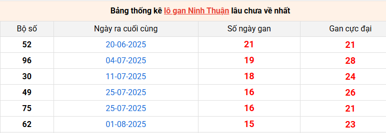Bảng thống kê lô gan Ninh Thuận lâu về nhất 21/11/2025