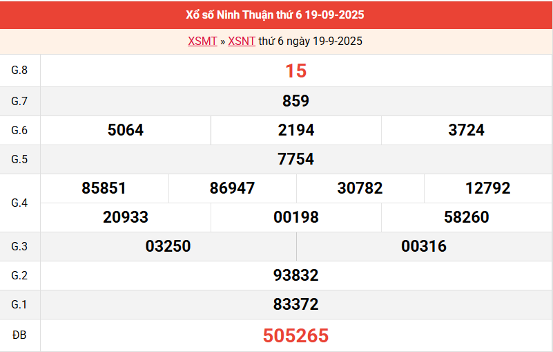 Bảng kết quả Ninh Thuận ngày 19/9/2025 tuần trước
