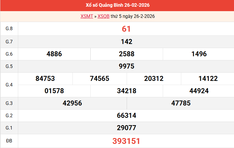 Bảng kết quả Quảng Bình ngày 26/02/2026 tuần trước