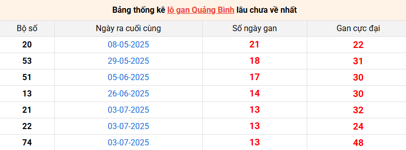 Bảng thống kê lô gan Quảng Bình lâu về nhất 09/10/2025