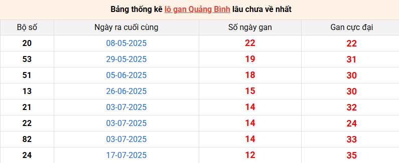 Bảng thống kê lô gan Quảng Bình lâu về nhất 16/10/2025