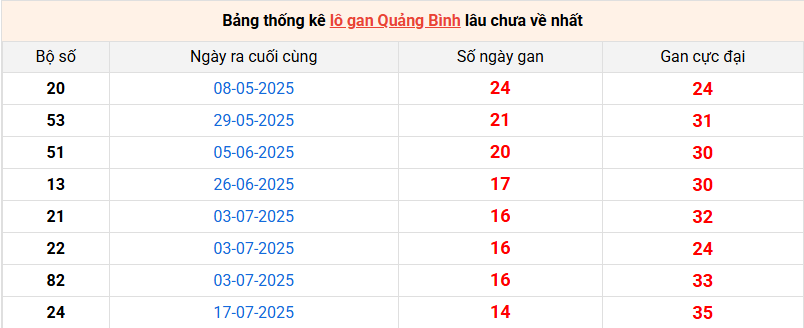 Bảng thống kê lô gan Quảng Bình lâu về nhất 30/10/2025
