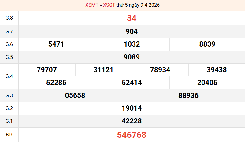 Bảng kết quả Quảng Trị ngày 09/04/2026 tuần trước