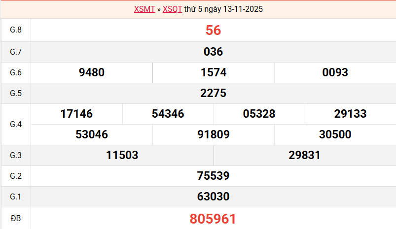 Bảng kết quả Quảng Trị ngày 13/11/2025 tuần trước