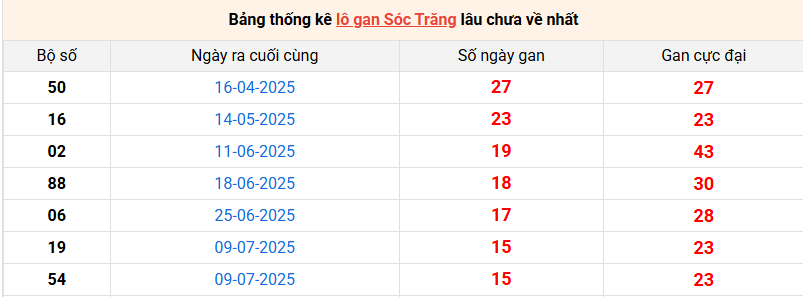 Bảng thống kê lô gan Sóc Trăng lâu về nhất 29/10/2025