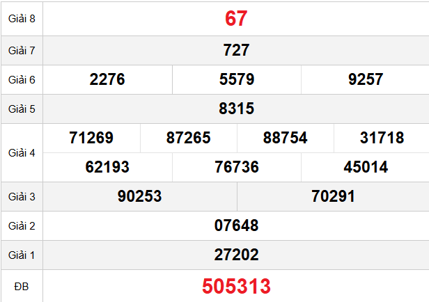 Mời các bạn xem lại bảng kết quả kỳ trước với giải đặc biệt, giải tám, lô tô 2 số để có thể đưa ra nhận định dự đoán TG ngày 08/02/2026 chuẩn xác nhất.
