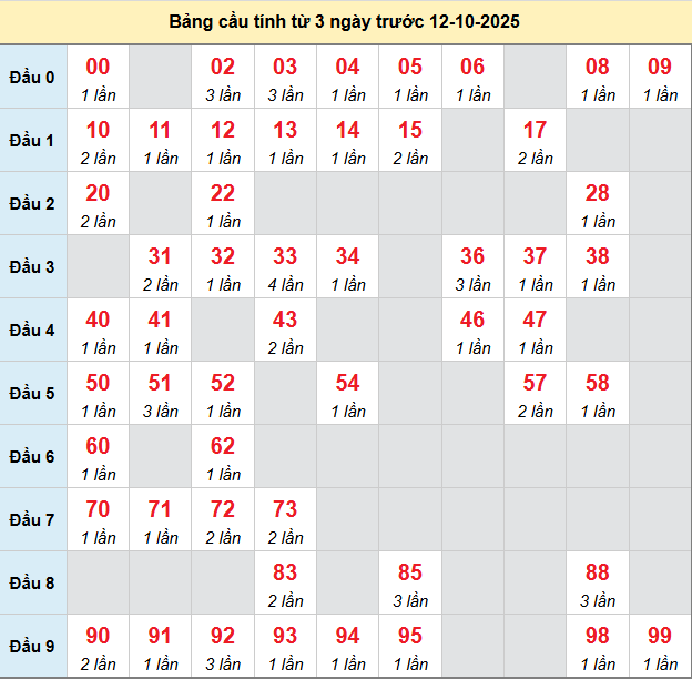 Soi cầu TG 12/10/2025 hôm nay miễn phí được lấy từ các dữ liệu thống kê cầu động chạy nhiều kỳ trước đó, chắc chắn sẽ giúp người chơi soi cầu loto bạch thủ kỳ này có được tỷ lệ trúng cao nhất.