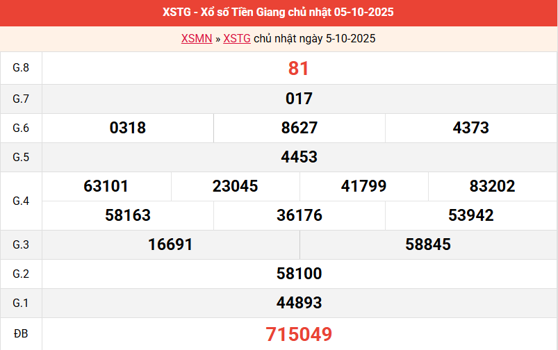 Bảng kết quả Tiền Giang ngày 05/10/2025 tuần trước