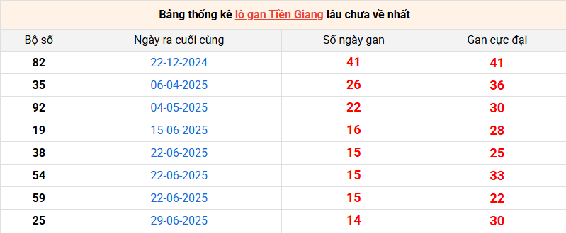 Bảng thống kê lô gan Tiền Giang lâu về nhất 12/10/2025