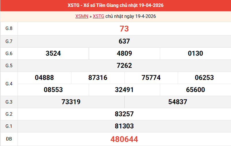 Dự đoán XSTG 26/04/2026 ❤️ Soi cầu dự đoán xổ số Tiền Giang ngày 26/04/2026 chủ nhật hôm nay như lô giải 8, bao lô 2 số, đặc biệt đầu đuôi, lô tô xiên 2, 3 chiều tối nay và ngày mai tỷ lệ trúng cao được phân tích.