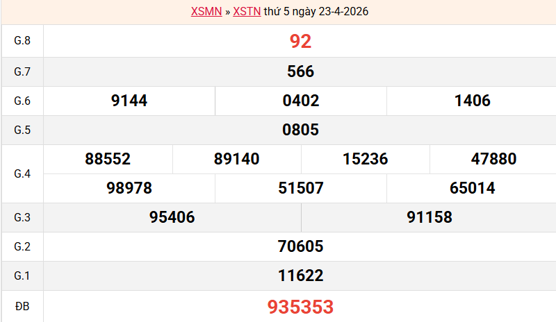 Bảng kết quả Tây Ninh ngày 23/04/2026 tuần trước
