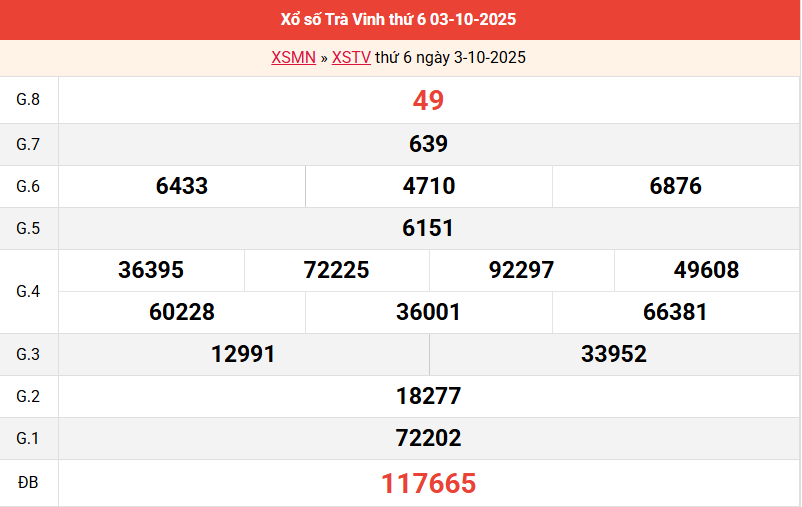 Bảng kết quả Trà Vinh ngày 03/10/2025 tuần trước