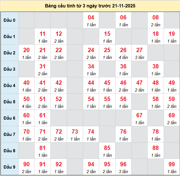 Soi cầu Trà Vinh ngày 21/11/2025 theo bảng bạch thủ 3 ngày