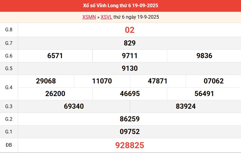 Mời các bạn xem lại bảng kết quả kỳ trước với giải đặc biệt, giải tám, lô tô 2 số để có thể đưa ra nhận định dự đoán VL ngày 26/9 năm 2025 chuẩn xác nhất.