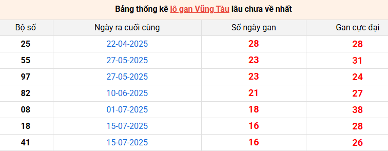 Bảng thống kê lô gan Vũng Tàu lâu về nhất 11/11/2025
