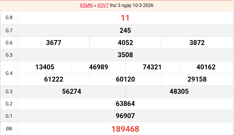 Bảng kết quả Vũng Tàu ngày 10/03/2026 tuần trước