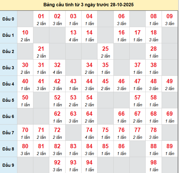 Soi cầu VT 28/10/2025 hôm nay miễn phí được lấy từ các dữ liệu thống kê cầu động chạy nhiều kỳ trước đó, chắc chắn sẽ giúp người chơi soi cầu loto bạch thủ kỳ này có được tỷ lệ trúng cao nhất.