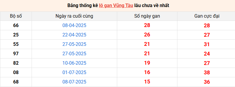 Bảng thống kê lô gan Vũng Tàu lâu về nhất 28/10/2025