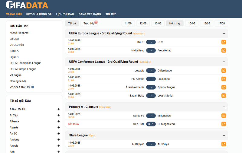 Fifadata – Trang bongdaso – Dữ liệu bóng đá số mới nhất