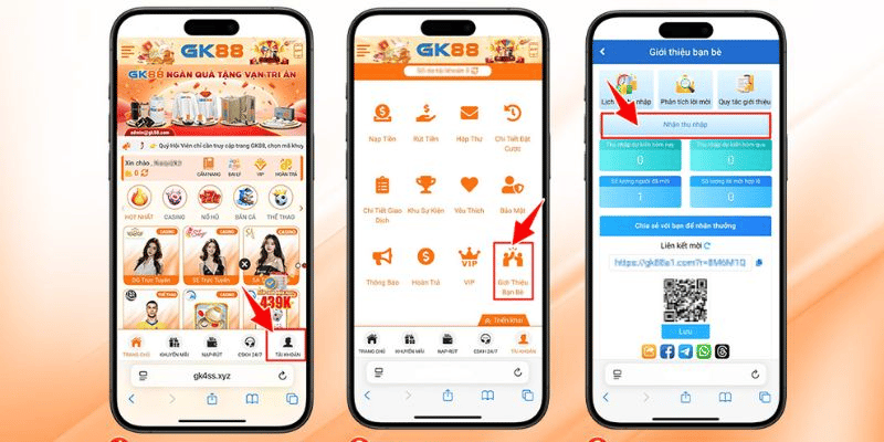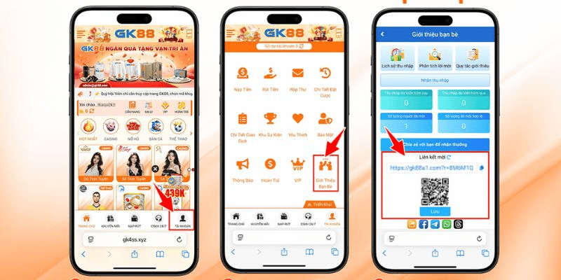 Chỉ cần truy cập vào trang web chính thức của gk88, người chơi cần thực hiện quy trình đăng ký khá đơn giản là điền thông tin cá nhân, sau đó đăng nhập vào hệ thống để bắt đầu hoạt động giới thiệu. Sau khi hoàn tất đăng ký, hệ thống sẽ cung cấp cho bạn liên kết đặc biệt để gửi tới bạn bè hoặc người thân muốn giới thiệu. Những liên kết này sẽ theo dõi hoạt động của bạn bè, ghi nhận các lượt đăng ký thành công để tính thưởng. Đồng thời, nên lưu ý về cách lấy mã referral, bảo mật link giới thiệu và không chia sẻ nhiều lần để tránh bị chặn hoặc mất quyền lợi.