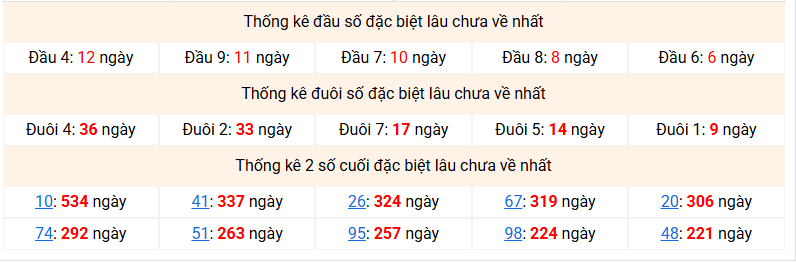 ⚡ Thống kê giải đặc biệt lâu chưa về: 10 - 41 - 26 - 67 - 20