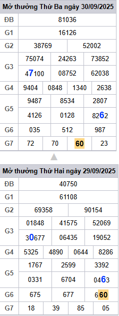 Kỳ trước xuất hiện 60 → Khả năng cao hôm nay sẽ về: 70, 07.