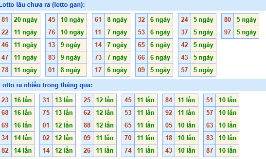Bảng tần suất lô tô miền bắc ngày 01/10