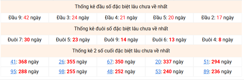 ⚡ Thống kê giải đặc biệt lâu chưa về: 41 - 26 - 67 - 20 - 51
