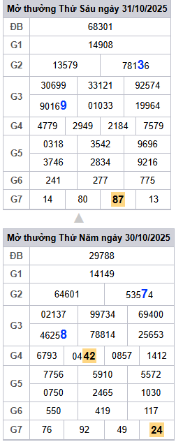 Bảng thống kê 2 số cuối đặc biệt gan ngày 01/11