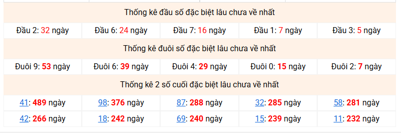 ⚡ Thống kê giải đặc biệt lâu chưa về: 41 - 98 - 87 - 32 - 58