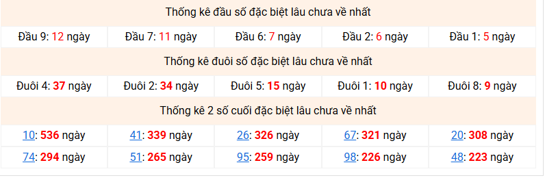 ⚡ Đầu - đuôi đặc biệt lâu chưa ra nhất: Đầu 9 (12 ngày) - Đuôi 4 (37 ngày)