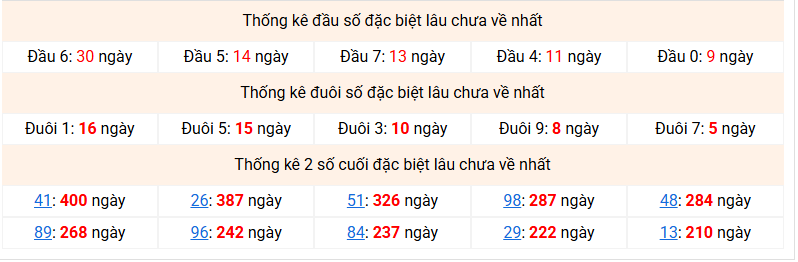 ⚡ Thống kê giải đặc biệt lâu chưa về: 41 - 26 - 51 - 98 - 48