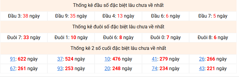 ⚡ Thống kê giải đặc biệt lâu chưa về: 91 - 37 - 10 - 41 - 26