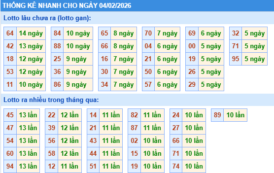 Bảng tần suất lô tô miền bắc ngày 04/02/2026