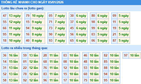 Bảng tần suất lô tô miền bắc ngày 05/01/2026