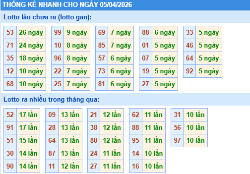 Bảng tần suất lô tô miền bắc ngày 05/04/2026