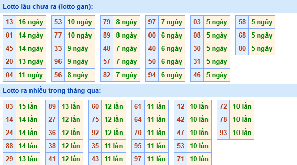 ⚡ Cặp loto ít về nhất: 13 - 01 - 45