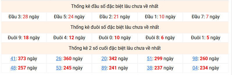 ⚡ Thống kê giải đặc biệt lâu chưa về: 41 - 26 - 20 - 51 - 98