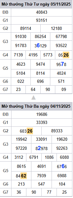 Bảng kết quả hôm qua ngày 05/11/2025