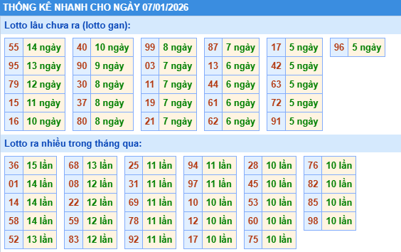 Bảng tần suất lô tô miền bắc ngày 07/01/2026