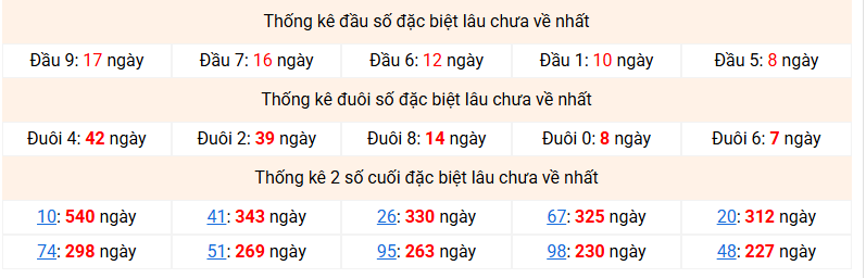 ⚡ Đầu - đuôi đặc biệt lâu chưa ra nhất: Đầu 9 (17 ngày) - Đuôi 4 (42 ngày)