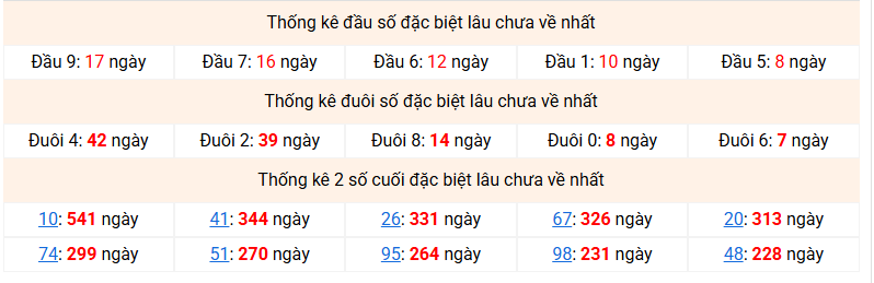 ⚡ Thống kê giải đặc biệt lâu chưa về: 10 - 41 - 26 - 67 - 20