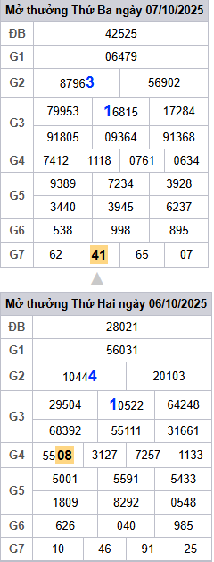 Kỳ trước ra 41 → Con số gợi ý: 16, 61.